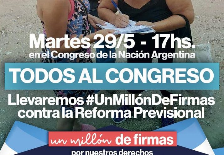 Después de muchos meses de juntar firmas el martes 29 de mayo a las 17 hs. se presentará en el Congreso pidiendo la derogación de la ley previsional aprobada en diciembre.