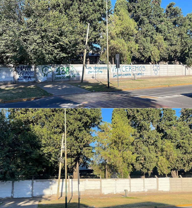 El acto de tapar con pintura blanca los grafitis fue grabado y distribuido en Instagram por Juventud LLASI, Ian Molina, Mateo Servan, Agustín Castiglione (asesor legislativo del HCD San Isidro y estudiante de Ciencias Políticas en la UCA,, y Pipo Paolucci (ex candidato a intendente de La Libertad Avanza San Isidro).