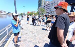 «Yo estuve a cargo de paseos turísticos por el Riachuelo, soy guía porque conozco cada lugar del río. Hacíamos paseos turísticos, navegaciones, no pueden creer cómo cambió el olor, el paisaje, que hay animales», dice Suárez (izq., durante una de las visitas guiadas).