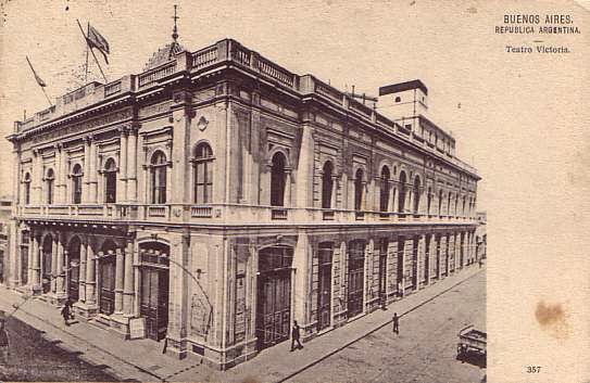 El Victoria tiene quince hileras en fila y tiene dos niveles de palcos. Está decorado con una equilibrada combinación de madera clara y mármoles grises. Su dueño, un gallego que ama al teatro y que se declara admirador de la causa socialista, es un explotador de sus pocos empleados. Es, además, un disconforme eterno con los contratos que firma con las compañías de teatro que suelen alquilar el Victoria, y quejoso (¿arrepentido?) de «los pocos pesos que me dan los socialistas que tengo aquí abajo», mientras señala con el pulgar el subsuelo.
