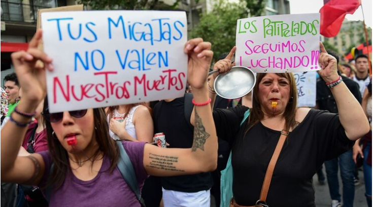 La protesta pacífica es la más importante desde el retorno de la democracia. El viernes, la Fiscalía identificó a 15 víctimas de los disturbios y el Ejército declaró el séptimo toque de queda consecutivo en Santiago.
