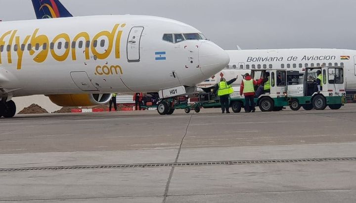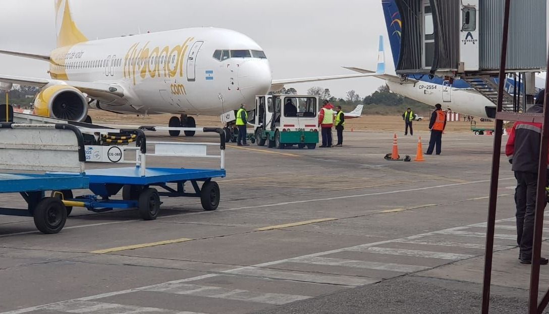 Con pasajeros a bordo, los camiones del equipaje debieron remolcar un avión de Flybondi