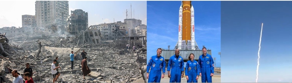 Un bombardeo mata niños, mujeres y hombres que estaban quizás siguiendo la aventura de ir a la luna, conocer el lado oscuro y acompañar a estos cuatro astronautas en esa proeza.