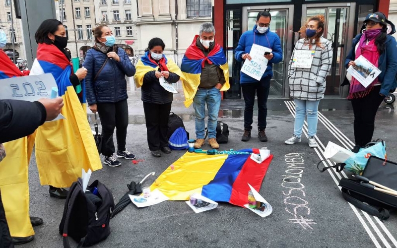 La protesta de Ginebra, una de las más concurridas de los últimos años si se habla de manifestaciones de solidaridad con Latinoamérica, permitió la confluencia de numerosas acciones simbólicas de apoyo al Paro Nacional Indefinido en Colombia, que se vienen realizando desde el jueves pasado en diferentes ciudades del país (entre ellas Berna y Friburgo).