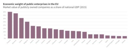 Como se ve, el peso económico de las empresas públicas en la UE como porcentaje del PIB es importante y valdría la pena rescatarla. Pero la idea no es esa, no es salvar el empleo o minimizar la protesta social, va un poco más allá. Tiene que ver, a través del relato de la seguridad nacional en todo Occidente, darle vía libre al endeudamiento estatal para justificar la independencia energética, financiera, tecnológica, etc.