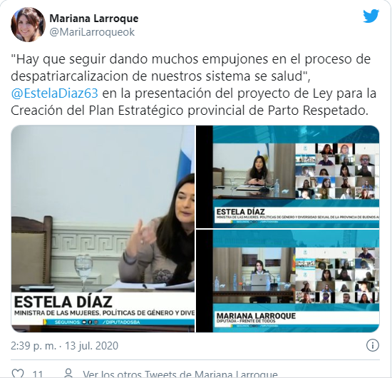 Hoy lunes 13 de julio, la diputada provincial Mariana Larroque, del Frente de Todos y Estela Díaz, la ministra de Mujeres, Políticas de Género y Diversidad Sexual de la provincia de Buenos Aires, presentaron en la Legislatura de la Provincia de Buenos Aires la creación de un Plan Estratégico de Parto Respetado.