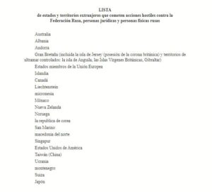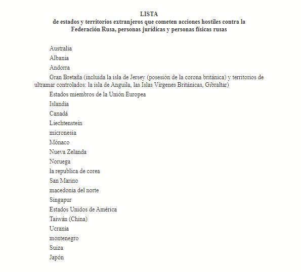 Dentro de las medidas que Rusia está barajando se encuentra el congelamiento de los reembolsos de préstamos a bancos occidentales y colocar los fondos en una cuenta congelada en un banco ruso. Medidas de endurecimiento cambiario por la fuga de capitales. Que la inversión se acelere para desarrollo de su propia base tecnológica en las áreas afectadas por las sanciones, en primer lugar, la industria de defensa, energía, transporte y comunicaciones y alimentos.