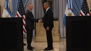 Antes de ingresar a la reunión con Aguad, el secretario de Defensa norteamericano calificó a la Argentina como «un socio y amigo» de Estados Unidos, y pidió un trabajo conjunto con el gobierno de Macri para una «colaboración militar estrecha para la seguridad de nuestros pueblos».
