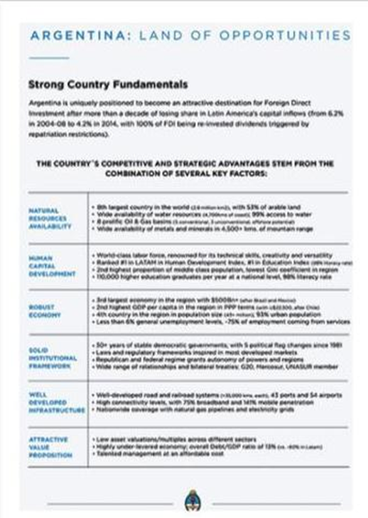 Aquella “Land of opportunities” que el entonces ministro de Economía y Finanzas, Alfonso Prat Gay, presentó en abril de 2016 ante potenciales compradores de los bonos del nuevo ciclo de endeudamiento externo -en esa oportunidad llegó a los u$s 15.000 millones-, forjada a lo largo de los 12 años de gobiernos de Néstor y Cristina Kirchner, era “primera en Latinoamérica en ´Desarrollo de capital humano´”, con el coeficiente Gini -mide la desigualdad social- más bajo de la región, “el mayor PBI per cápita en la región después de Chile” y una desocupación “por debajo del 6%”. Al mismo compás, el INDEC macrista reconocía que el PBI había subido 2,1% en valores interanuales durante 2015, con crecimiento del 1,75%en los sectores productivos de bienes, del 2% en servicios, 6,4% en el sector agropecuario, 3,9 en la generación de electricidad, gas y agua y del 5% en construcción.