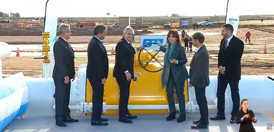 El presidente Alberto Fernández, la vicepresidenta Cristina Fernández y el ministro de Economía y precandidato presidencial, Sergio Massa, inauguraron este domingo el Gasoducto Presidente Néstor Kirchner en la ciudad bonaerense de Salliqueló con llamados a la «unidad» del peronismo y el reconocimiento de medidas de gestión que fueron relevantes para el desarrollo de la obra, como la nacionalización de YPF y la sanción del Aporte Solidario y Extraordinario a las Grandes Fortunas.