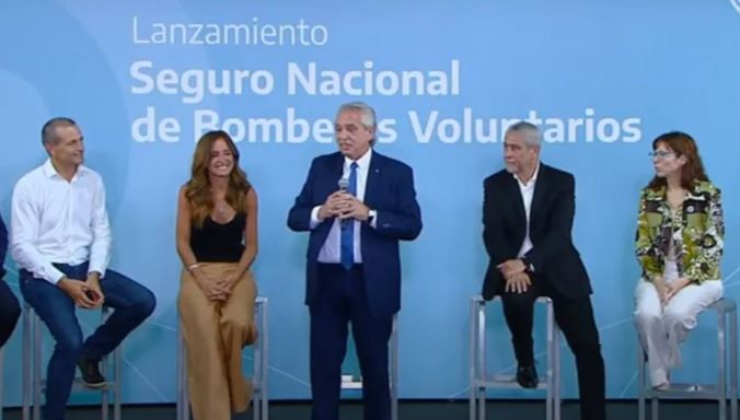 Durante la presentación del seguro, Alberto Fernández destacó la labor de los bomberos voluntarios e intentó dejar atrás la polémica desatada por los dichos del viceministro de Ambiente de la Nación, Sergio Federovisky, que derivó en un “sirenazo” en todo el país.