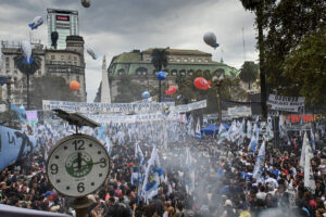 “Y yo que quería ser una figurita de Billiken”, dijo Cristina al inicio de su discurso, rodeada de sus familiares y funcionarios más cercanos, ante la imagen impactante de una plaza lluviosa y colmada de militantes, banderas y paraguas. Lo cierto es que, en las revistas Billiken del futuro, el 25 de mayo de 2023 va a quedar marcado como una super-efeméride, una fecha que condensa tres grandes hitos históricos: la revolución de mayo en 1810; los cincuenta años de la asunción de Héctor Cámpora en 1973, el candidato de la Juventud Peronista que asume luego de la proscripción de Perón y, por último, los veinte años desde la asunción de Néstor Kirchner a la presidencia de la Nación en 2003. A diferencia de las fechas in-felices de las que habla Elizabeth Jelin, podría decirse que, para el campo nacional y popular, el 25 de mayo es una fecha feliz. El 25 de mayo como acumulación de símbolos y ritos, el 25 de mayo como cristalización de un relato nacional, el 25 de mayo y sus efectos de condensación y desplazamiento. Tres formas y tres momentos de la liberación nacional.