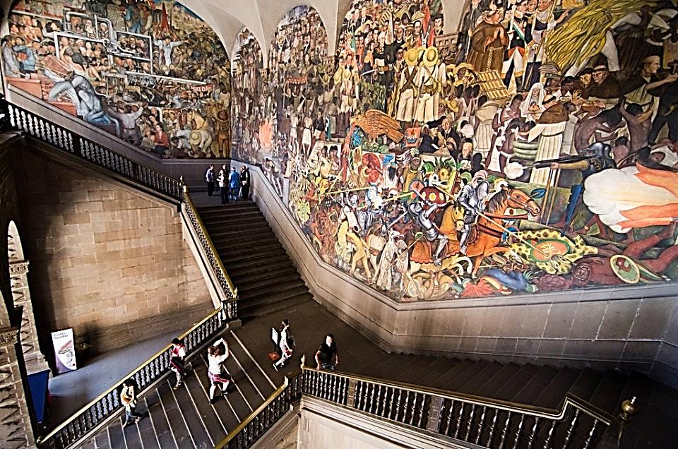 El visitante, Alberto Fernández, mandatario electo desde el 27 de octubre por la ciudadanía argentina, habrá sentido el impacto que genera el mural de Diego Rivera, estampado sobre el cubo de la escalera principal, cuando su anfitrión, Andrés Manuel López Obrador, Presidente de los Estados Unidos Mexicanos desde el 1 de diciembre de 2018, lo condujo del brazo hasta el lugar.