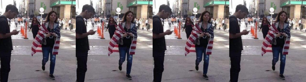 Ciudadana argentina envuelta en la bandera de los EEUU en la visita del ex presidente Obama en 2017.-