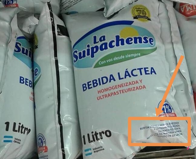 La marca «La Suipachense», por ejemplo, imprime en su producto la leyenda «en base a leche» y más abajo (lateral derecho) «No sustituye a la leche». Es suero, restos de la fabricación de quesos, con algo de leche vacuna.