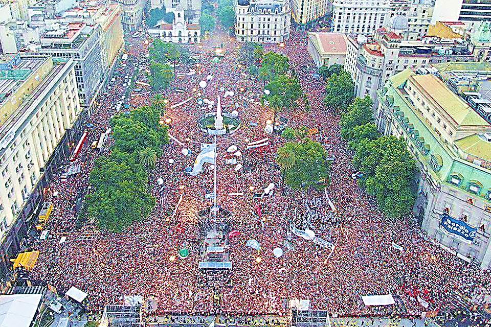 Estallido y alivio, alegría y esperanza, sufrimiento convertido en decisión, oasis soñado en pleno cruce del peor de los desiertos, desahogo, gol cuando la agonía apretaba el cuello… Fue la fiesta compartida, las marchas y los cantos, banderas, el humo incomparable de los choripanes, un alivio para aquel pedido estampado en los pechos de las pibas que reclamaban “abrazame hasta que vuelva”; fue canto y consigna, un mar de alegrías compartidas, una puerta que se cierra y un cielo que se abre.