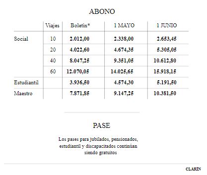 El tarifazo también alcanza al Premetro, que comenzará a costar $ 200,90 en abril y 233,45 a partir de mayo. Mientras que en junio saldrá $ 300,67. Al mismo tiempo, el decreto publicado este miércoles mantiene los abonos y descuentos para estudiantes, jubilados y personas trasplantadas. Y el sistema de beneficios para pasajeros frecuentes, que implica una reducción en la tarifa a partir del viaje número 21. También rige la Red SUBE, por la cual se paga el 50% del valor del segundo viaje y el 25% del tercero, siempre que se inicien dentro de las dos horas de comenzado el primer trayecto.