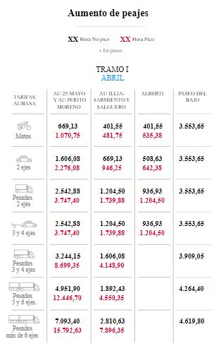 En cuanto al fuerte aumento de los peajes, que además llevará el costo de la Illia a $ 946 y $1277.94 en hora pico en el primer y segundo tramo, desde Ausa, la empresa porteña que gestiona las autopistas, explicaron: «El objetivo principal es compensar la ecuación económica financiera, dado que la inflación acumulada va cada vez más en aumento y no se llega a mantener el equilibro necesario para que con los ingresos se pueda realizar el mantenimiento de los 51 km de trazas».