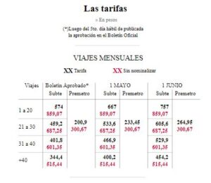• A cuánto se irán las tarifas del subte en mayo y junio.