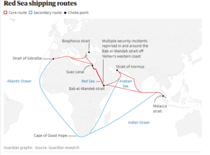 ¿La crisis del Mar Rojo pone a prueba las ambiciones globales de China? Básicamente, no. Lo que la pone a prueba, y frena su capacidad de dominio global, es la incertidumbre mundial, cuanto más expuesto y peligroso resulte el planeta, se retrasa el crecimiento y la hegemonía China. Lo que es verdad es que el 95% de las exportaciones chinas a Europa pasan por el Canal de Suez y, al igual que muchas empresas navieras mundiales, los gigantes navieros estatales chinos, COSCO y OOCL, desviaron docenas de barcos del Mar Rojo a una ruta mucho más larga alrededor del extremo sur de África y las tarifas de transporte marítimo de Shanghái a Europa aumentaron más de un 300% entre noviembre y enero, según la Bolsa de Transporte Marítimo de Shanghái. Nadie fuera del negocio.
