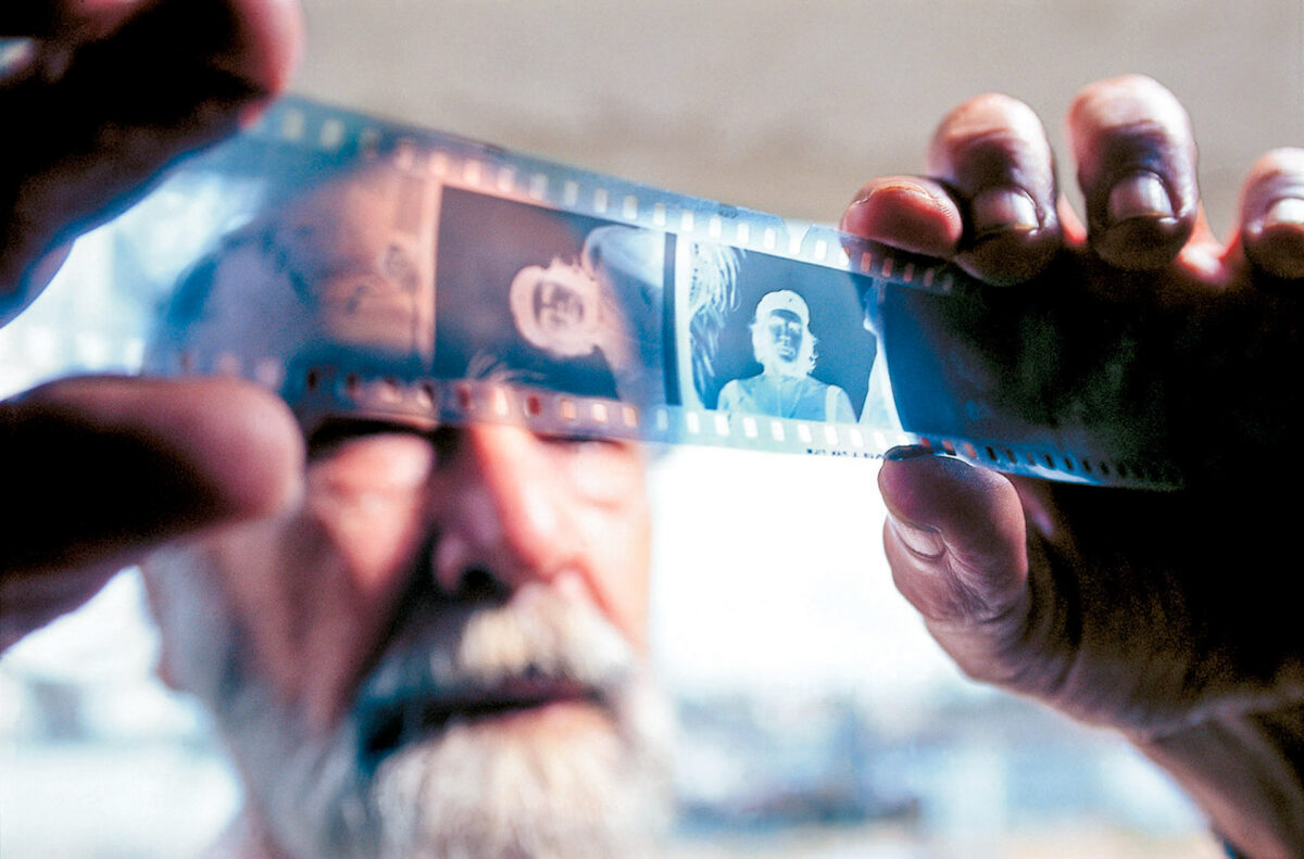 En Cuba, esa imagen, sintetizada en un relieve escultórico de 36 metros de altura por el artista Enrique Ávila, preside la inmensa plaza de la Revolución desde el frente del Ministerio del Interior. Inaugurado el 8 de octubre de 1993, desde entonces comparte con el monumento a José Martí la iconografía oficial en La Habana. Comenzó entonces a circular también allí en miles de suvenires, desde esos años en que la isla encaraba una estrategia de desarrollo del turismo ante la crisis desatada por la caída del bloque soviético. Se imprimió y se sigue imprimiendo en todo tipo de soportes: afiches, remeras, lapiceras, encendedores, mates, adornos para el pelo y la ropa, etc. Fue por entonces que el argentino Marcos López, durante sus años de formación en la escuela de cine de San Antonio de los Baños en Cuba, comenzó a dar forma a su proyecto de Pop Latino, a partir de una reflexión sobre la construcción de la propia subjetividad alimentada por figuras icónicas como Gardel y el guerrillero heroico. López visitó en esos años a Korda y le tomó una fotografía que es una imagen sobrecargada de significados: retrató al fotógrafo mirando al trasluz los negativos entre los cuales su mirada experta había elegido la que se volvería monumental (lámina 46).