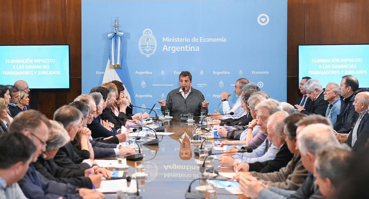 «Para mí el salario no es ganancia, el salario es remuneración. Es el pago por el trabajo y el esfuerzo que hace cada trabajador», afirmó Massa, al tiempo que confirmó: «Hemos decidido enviar al Congreso Nacional una ley que elimina la cuarta categoría del Impuesto a las Ganancias para todos los trabajadores y jubilados de la Argentina».