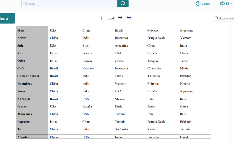 Principales productores de algunos alimentos mundiales en 2018