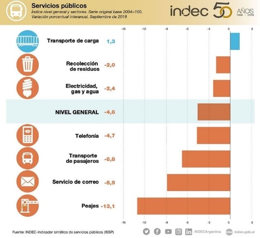 Como era de esperarse los servicios públicos cayeron de manera preocupante durante el 2018 y acelerada durante el 2019, y como era de esperar los indicadores que tenía que ver con ventas minoristas tendrían una mala performance.