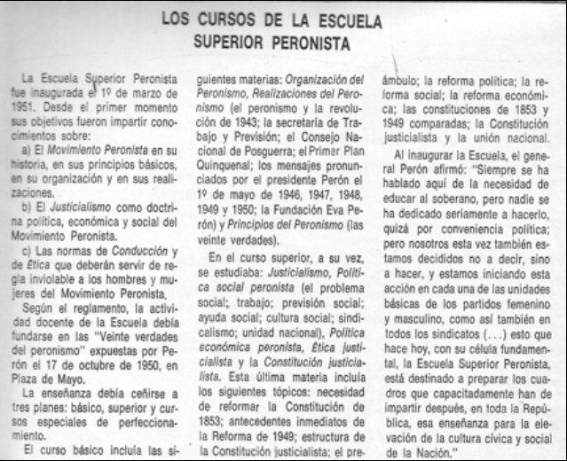 1 Nos referimos a la formación de los sectores al interior del movimiento, y no así a las políticas diseñadas en torno a la educación, la cultura, la ciencia, etc. en general, dado que nuestro interés en este artículo radica en el sentido mencionado. Sin embargo, no queremos dejar de poner de relevancia la profundidad y desarrollo en ese “otro campo” de la formación de la población de nuestro país.