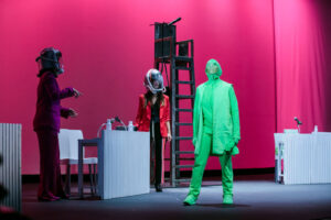 “Parlamento” de Piel de Lava. La Tierra se incendia, y con ella los humanos, las ciudades y sus instituciones. “Parlamento”, la última creación de las Piel de Lava, pone en escena una legislatura global que, desde el espacio, decide el rumbo del mundo. Si a veces nuestros representantes parecen “vivir en otro planeta”, en esta obra directamente están fuera de él. El colectivo integrado por Pilar Gamboa, Elisa Carricajo, Laura Paredes y Valeria Correa explora la teatralidad de los discursos políticos contemporáneos. La pieza, reestrenada en el Teatro Picadero y que se suma al Festival Futuro Imperfecto, expone los bordes siniestros de las burocracias adheridas a las normas de deliberación, propios de cualquier sistema consultivo. ¿Qué pasa cuando quedan en evidencia las miserias y errores del funcionamiento de la democracia?