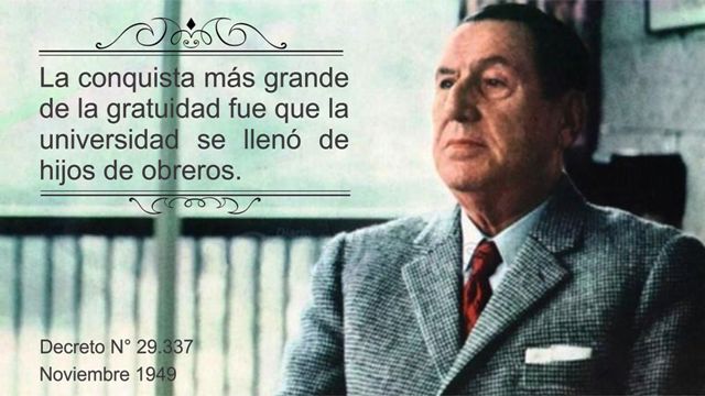 Nos referimos al decreto 29.337 firmado por el presidente el 22 de noviembre de 1949, a través del cual se suspendió el cobro de aranceles en las universidades nacionales. Pasaban a ser gratuitas. En la justificación del texto se decía que “el engrandecimiento y auténtico progreso de un pueblo estriba en gran parte en el grado de cultura que alcance cada uno de los miembros que lo componen”. Agregaba “que una forma racional de propender al alcance de los fines expresados es el establecimiento de la enseñanza universitaria gratuita para todos los jóvenes que anhelen instruirse para el bien del país”.
