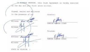 Diago estableció que tras su muerte o incapacidad, Cristian Ritondo asumiría su lugar como administrador de los bienes en Florida y que los beneficiarios finales de estos serían los dos hijos del matrimonio.