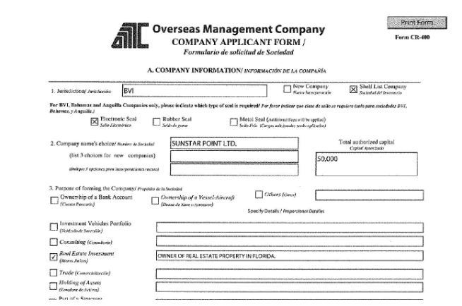 Sunstar Point es una sociedad radicada en Islas Vírgenes Británicas, una de las jurisdicciones más secretas del Caribe, y fue activada por Diago en 2014. Su objetivo es ser propietaria de propiedades en Florida, Estados Unidos. ICIJ/elDiarioAR.