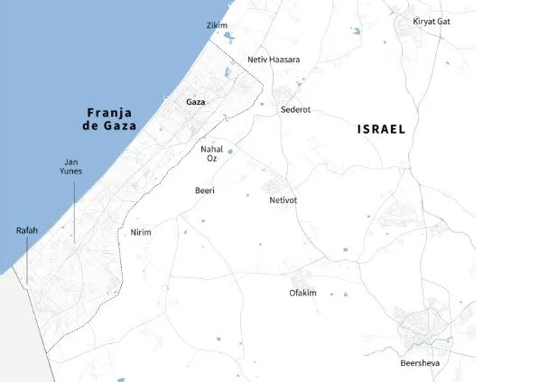 Mapa del suroeste de Israel y de la Franja de Gaza