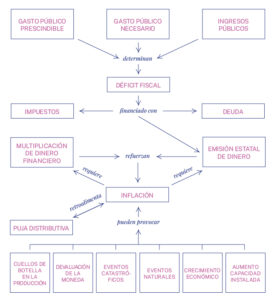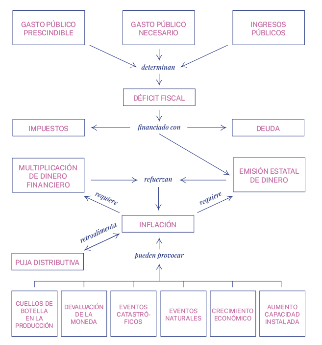 ¿La inflación se provoca entonces porque el Estado emite para financiar gasto excesivo? No. La inflación se produce por múltiples causas, que dependen del momento y el lugar, y no tiene relación directa, obvia y permanente con el gasto público o su financiamiento.