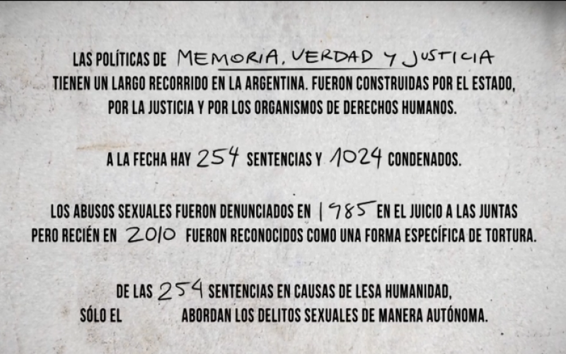Desde el año 2012 el Ministerio Público Fiscal de la Nación impulsa la persecución penal de los crímenes de violencia sexual cometidos durante el terrorismo de Estado, considerándolos delitos autónomos y buscando visibilizarlos para establecer responsabilidades. 2013 fue el pico máximo de sentencias obtenidas. Las prácticas de abuso, violación sexual, tocamientos y abortos forzados fueron extendidas en todo el país durante la represión ilegal. El Poder Judicial tardó casi tres décadas en nombrar los crímenes de género que quedaban solapados bajo la figura penal de “tormentos”. En el Código Penal argentino la violación sexual estaba tipificada como “delito contra la honestidad” y recién en 1999 la definición fue cambiada por “delito contra la integridad sexual”.