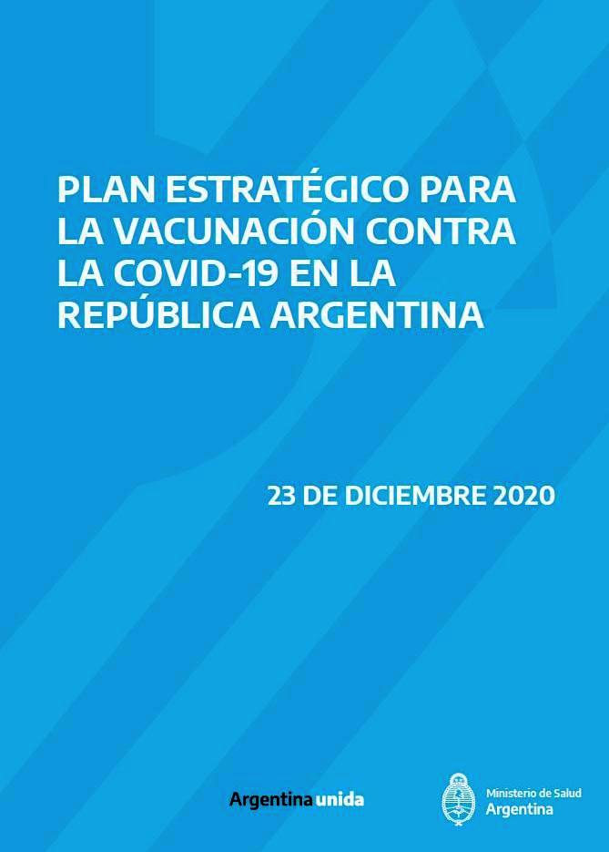 El Gobierno Argentino desarrolló un “Plan Estratégico para la vacunación contra la COVID-19”, con el propósito de disminuir la morbi-mortalidad, junto con el “impacto socio-económico” que ocasiona la COVID-19. Apunta a vacunar al 100% de la población definida como “objetivo”, en función de un orden de prioridad de riesgo, que se irá cruzando con la disponibilidad de vacunas.