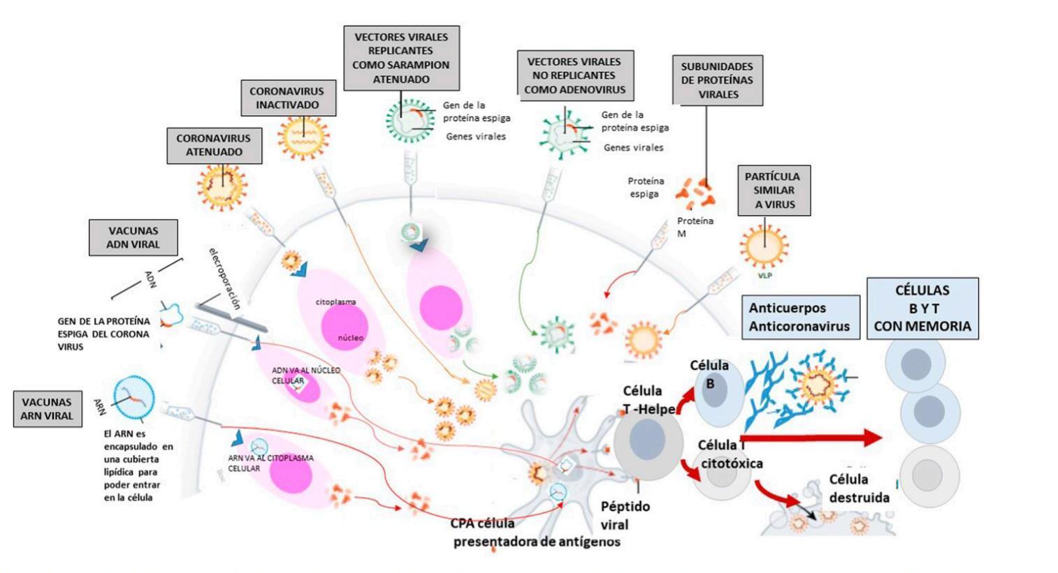 basan en distintas “plataformas” tecnológicas: desde las tradicionales, desarrolladas en base a virus vivos y atenuados o inactivados; las basadas en “vectores virales” seguros, incompetentes para la replicar la enfermedad que se busca combatir y de baja toxicidad y que pueden o no multiplicarse; hasta las técnicas innovadoras que utilizan “ácidos nucleicos”, portadores de información genética (ADN y ARNm).