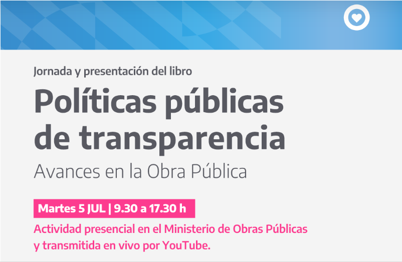 Al final de la jornada, el Ministro de Obras Públicas, Gabriel Katopodis, presentará el libro “Políticas públicas de transparencia. Avances en la Obra Pública” junto a autoridades del ministerio. Contará con los comentarios de Carlos Montero, Síndico General de la Nación; Agustín Aguerre, representante del BID de Argentina; y Mario Riorda, especialista en Comunicación Política.