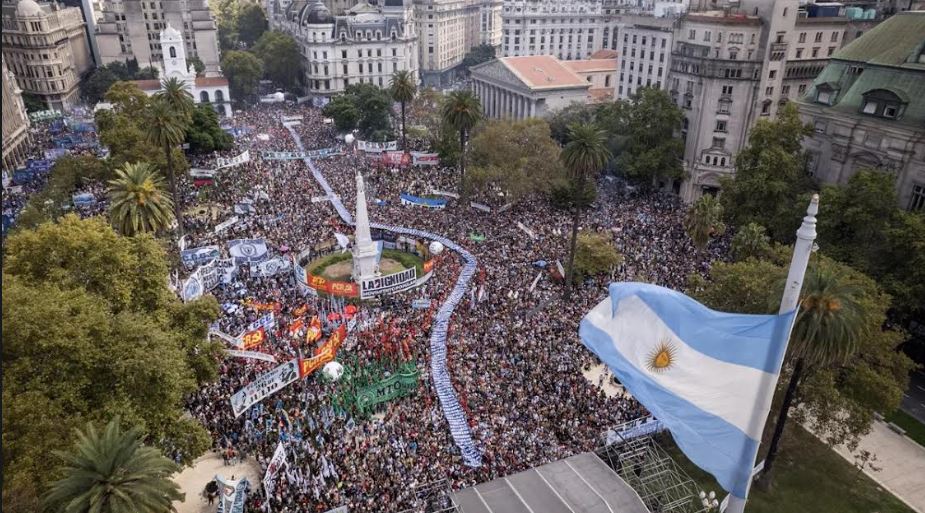 Y me es inevitable pensar en Rodolfo Walsh e imaginar lo que él hubiera podido escribir en estos momentos y ver esta plaza hoy 48 años después del golpe militar y 47 de su secuestro y desaparición.