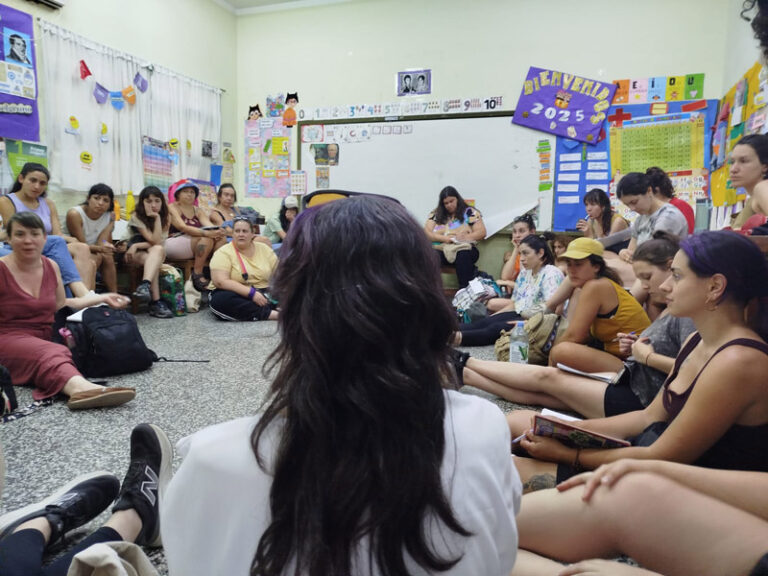 Las otras tres nos fuimos a los talleres. A las seis de la tarde nos volveríamos a encontrar, pero teníamos que tomar decisiones, ya que varias actividades ocurrían en simultáneo: algunas irían a la marcha por los Travesticidios, Lesbicidios y Transfemicidios; otras a la presentación de libros como «Estafa de la Feminidad» y «Contra el autoritarismo de la libertad financiera»; y otras se unirían al pañuelazo por el derecho al aborto legal. Tuvimos que elegir una sola actividad. Y esta fue una de las tantas veces que lamentamos que el Encuentro no durara al menos una semana, para poder estar en las actividades que queremos estar y se superponen, y escuchar más a nuestras compañeras y apoyar sus actividades.