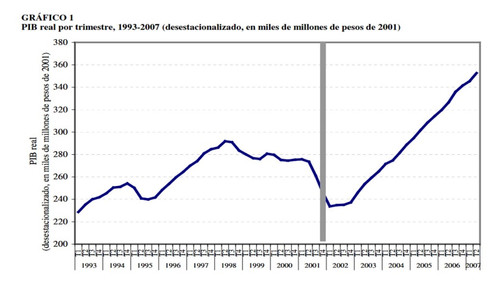 La idea de ese entonces, al igual que la actual, era que Argentina pagaría un precio muy alto por el impago de su deuda, el más grande en la historia y que, además, este castigo duraría años. Esta creencia se mantuvo en los años subsiguientes y persiste en la actualidad. Sin embargo, como muestra el cuadro del Center for Economic Reasear (CERP) la economía argentina se contrajo solamente durante tres meses después de la cesación de pagos.
