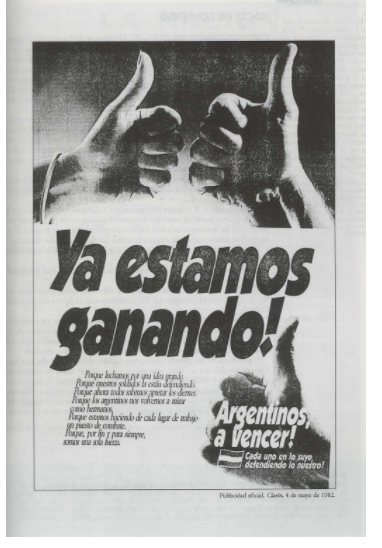 Por tal motivo, la dictadura impulsó una fuerte campaña de prensa y propaganda sobre el conflicto en las Islas. El control y la manipulación sobre los principales medios de comunicación nacionales se profundizó en el marco de la guerra a partir de un aparato mediático que se puso al servicio de una campaña de propaganda atravesada por la tergiversación de la información y el triunfalismo nacionalista.
