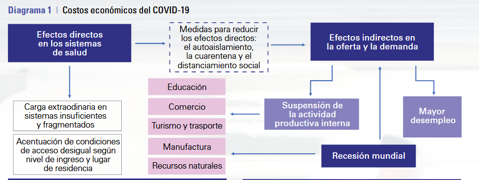 Y aquí está la fase optimista o de reconversión de las antiguas políticas globalizadoras por una nueva desconexión que, esperamos, modifique el mercado y la producción mundial y regional. No hablaremos de modelos predictivos poscoronavirus, todos sabemos los efectos indirectos, minimizados en el cuadro de Cepal (diagrama 1), donde se destacan y detallan caídas en la oferta-demanda, problemas financieros, de liquidez y acumulación de deuda. También sabemos que el comercio mundial se desacelerará y trasladara sus efectos al sector externo, la macro y la microeconomía.