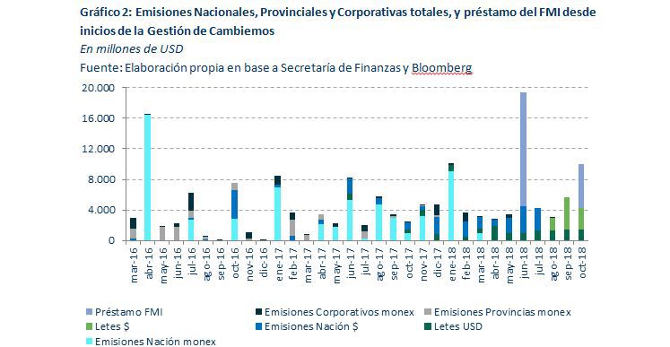Para peor, según el informe de la UMET, de las emisiones de deuda del Tesoro Nacional en moneda local y extranjera, los desembolsos por el préstamo del Tesoro Nacional con el Fondo Monetario Internacional (FMI) suscripto en junio de este año, y las emisiones de las Provincias y el Sector Corporativo desde inicios de la gestión de Cambiemos, el 78% son colocaciones en moneda extranjera y el 83,4% colocaciones únicamente del Tesoro Nacional (aproximadamente u$s 128.117 millones).