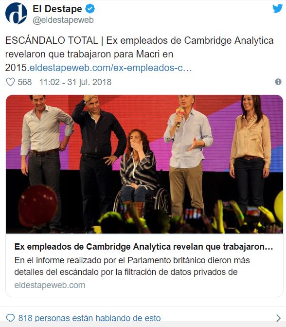 Hoy el uso de Big Data para competir en elecciones está generalizado, pero no todos tienen la decisión y el dinero para utilizarlo eficazmente. En Argentina gobierna un equipo convencido de las virtudes del sistema y con dinero de sobra. Del otro lado, en el peronismo, hay aún políticos de primera línea que ignoran totalmente el tema y siguen apostando su dinero en los medios de comunicación tradicionales.