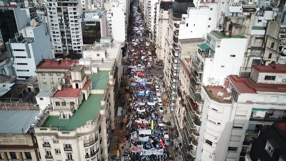La ciudad de Buenos Aires fue el escenario central de la protesta, a la que llegaron delegaciones de Chubut para visibilizar el conflicto que en aquella provincia lleva 108 días. «El gobernador Mariano Arcioni, aliado de Mauricio Macri, tiene un único plan, el ajuste. La provincia de Chubut tiene una crisis que él inventó, y que no quiere solucionar porque lo único que quiere es garantizarle al Gobierno nacional y a sus amigos los negocios de la megaminería», denunció el titular de ATECH, Santiago Goodman.