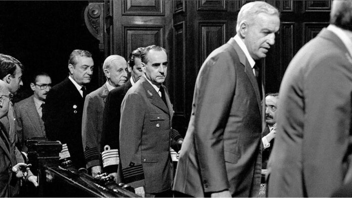 En una escena del film Argentina 1985 el fiscal Strassera (Ricardo Darín) acude escéptico a su amigo mayor, el Ruso (Norman Brisky). Ha recibido la encomendación de acusar a las Juntas militares que gobernaron el país durante la dictadura, pero no cree que el poder judicial, la política argentina ni él mismo estén a la altura de las circunstancias. El Ruso lo alienta con el siguiente argumento: cada tanto, incluso en el peor de los sistemas (se refiere al Estado), se abre una rendija y, si se la aprovecha, es posible producir un cambio trascendente. Poco después, vemos a Massera y a los demás miembros de las Juntas compareciendo en silencio ante un alegato que termina con citando el informe Nunca Mas de la CONADEP. ¿Qué se sanciona en ese juicio? No, por cierto, el programa triunfante del llamado Proceso de Reorganización Nacional, ni tampoco a la extensa trama de sus beneficiarios y cómplices de los militares. Si un error de perspectiva cometía en su defensa Massera (diciéndole a los jueces que si “hubiéramos perdido no estaríamos acá, ni ustedes ni nosotros”), era el no percibir adecuadamente hasta qué punto lo que realmente se condenaba era la autonomización de la máquina de guerra de ultraderecha.