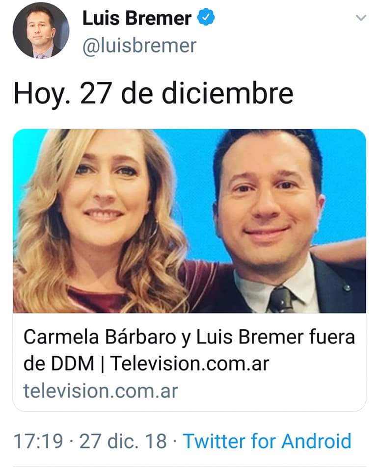 Aprovechando la ocasión de las vacaciones de Mariana y Mariano, dieron de baja los contratos del locutor y periodista Luis Bremer, y de Carmela Bárbaro Hoy estimo día en «El Diario de Mariana» (DDM).