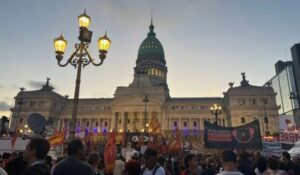 El de afuera del Congreso era un panorama que repetía el escenario comunicacional armado: 5.000 efectivos de las fuerzas de seguridad instalados en torno al Congreso (es bastante raro que, teniendo el apoyo del 56% de los argentinos, como dice tener, necesite semejante operativo); un sistema anti-drones instalado por la Fuerza Aérea, la policía gaseando al público antes de que nada empezara, sólo por cantar «la Patria no se vende» (22 personas afectadas por el nuevo gas que produce quemaduras apenas llegó el Presidente al Congreso) y, por supuesto, corridas, peleas entre militantes libertarios y opositores, mucho cántico con referencia a la mamá de Milei y muchas personas mayores sueltas, algunas aunadas bajo el lema de «Jubilados Insurgentes». Un amor.